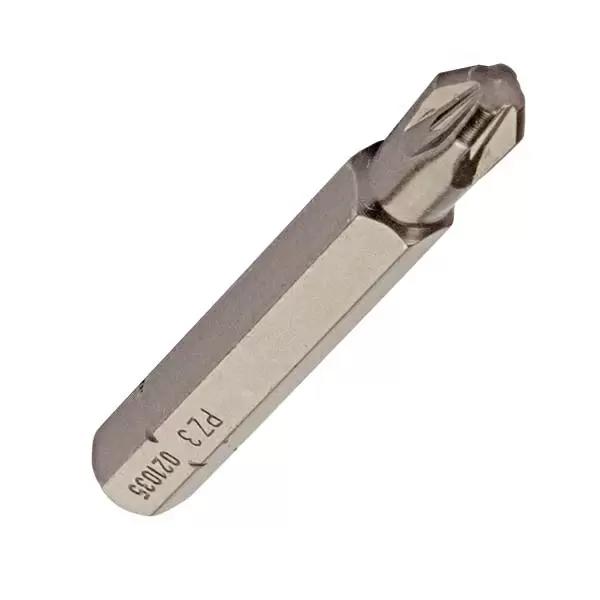Бита Industrial с типом шлица PZ (Pozidriv) предназначена для работы с крепежом, имеющим шлиц Pozidriv, который отличается от Phillips дополнительными линиями, обеспечивающими лучшее сцепление. Эта бита разработана для использования в промышленных и тяжелых условиях, где требуется высокая надежность и износостойкость.
