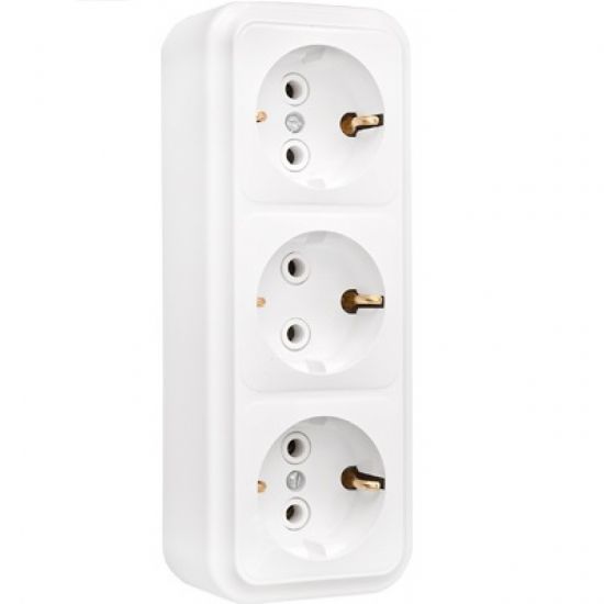 Колодка розеточная 3 гнезда с/з белая ПРАЛЕСКА