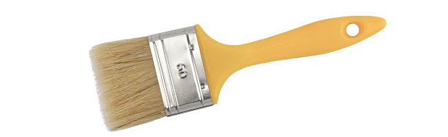 Плоская кисть с натуральной щетиной используется в малярных работах. Пластмассовая рукоятка более практична при воздействии с растворителями. Отверстие для подвеса значительно упрощает хранение.