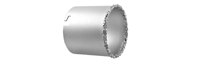 Коронка по дереву и пластику. Режущая кромка покрыта вольфрамово-карбидным порошком. Применяется по кафелю, кирпичу, стеклу. Полотно из термообработанной усиленной углеродистой инструментальной стали марки. Более эффективно сопротивляется нагрузкам.