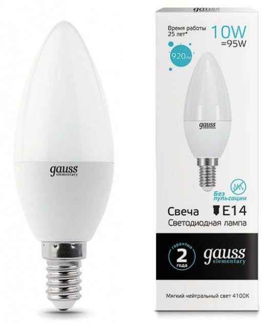 Лампа светодиодная Gauss LED Elementary Свеча 10W E14 730lm 4100K