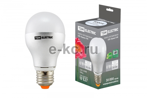 Лампа светодиодная А60 6Вт 230В 6500К E27 TDM Electric