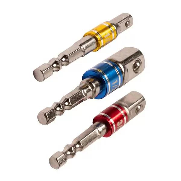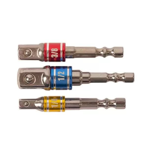 Набор адаптеров для торцевых головок 1/4", 3/8", 1/2" представляет собой незаменимый набор для работы с гаечными ключами и торцевыми головками различных размеров. Эти адаптеры позволяют использовать торцевые головки с приводами различного размера, увеличивая универсальность и гибкость вашего инструментального арсенала.