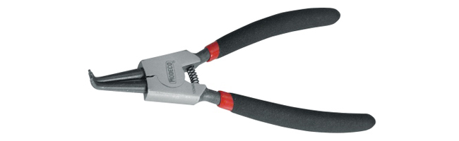 Съемные плоскогубцы применяются для монтажа и демонтажа внешних стопорных колец. Наконечники имеют специальную форму, предотвращающую срыв стопорного кольца, и прошли специальную термическую обработку для достижения высокой твердости. Плоскогубцы имеют пружину открытия, которая облегчает работу инструмента. Прорезиненная прочная ручка с нескользящим покрытием гарантирует надежное сцепление.