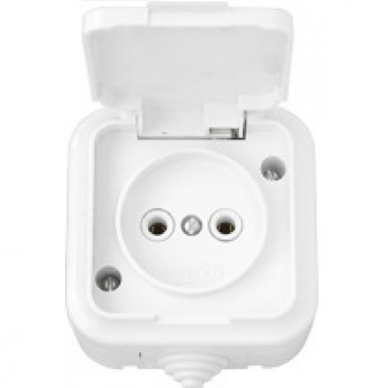 Розетка одинарная без заземления брызгозащищенный накладной белый ПРАЛЕСКА BYELECTRICA