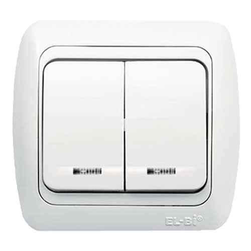 Выключатель двухклавишный с подсветкой белый EL-BI TUNA