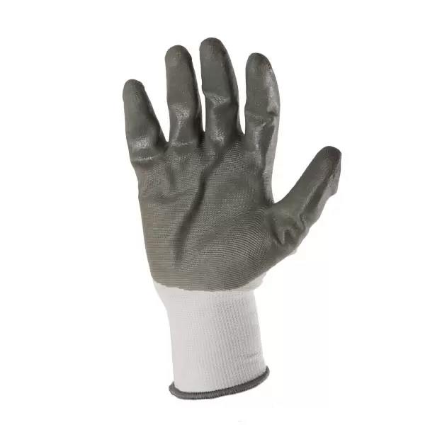 Перчатки из полиэстера белые, серый нитрил неполный облив, вязаная манжета 10" (L) Profmet