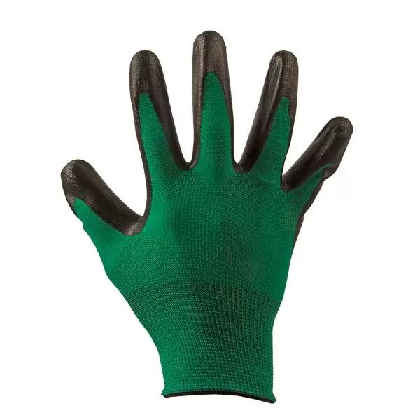 Перчатки из полиэстера зеленые, покрытие черный нитрил неполный облив, вязаная манжета 8" (M)