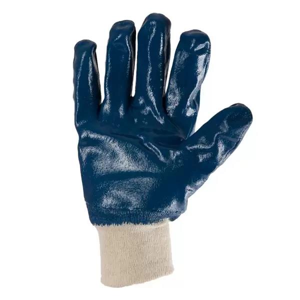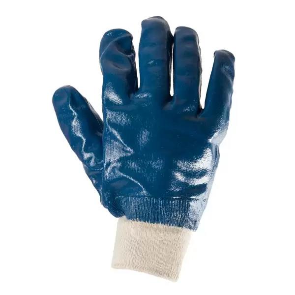 Перчатки нитрил полный облив, манжет вязаный, синие 10" (L) Lider