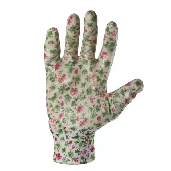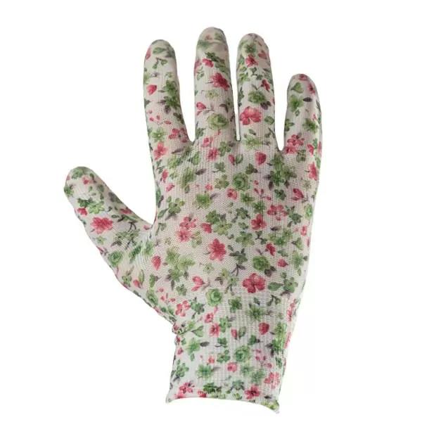 Перчатки садовые из полиэстера с цветами, покрытие нитрил неполный облив 8" (M) Profmet