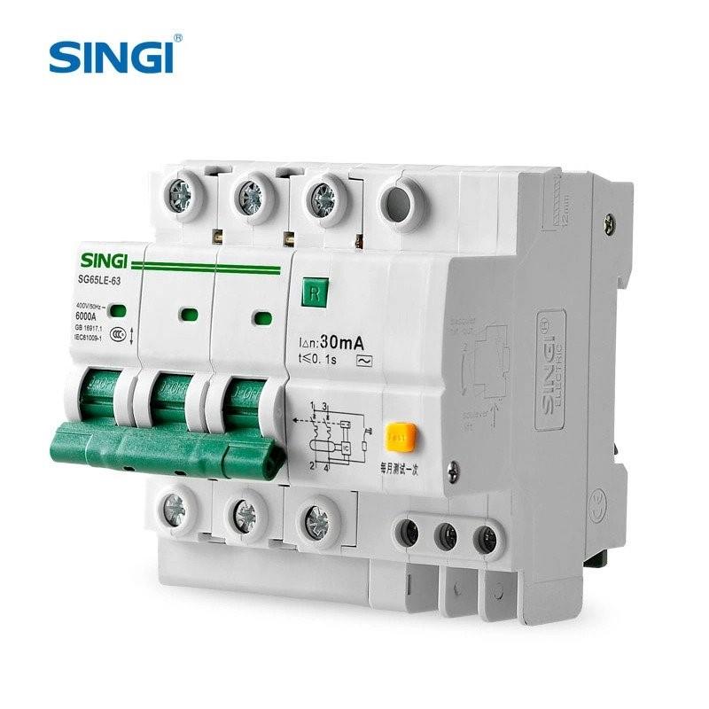 Автоматический выключатель дифференциального тока 3P+N 40А С 30mA 6kA тип А SG65LE-63 SINGI